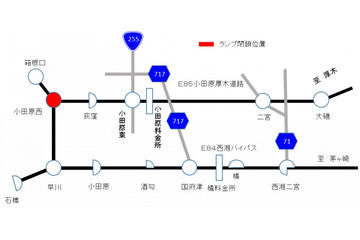 NEXCO中日本、小田厚 小田原西ICを6月の平日昼間にランプ閉鎖。計6日間