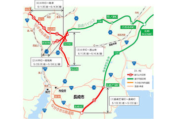NEXCO西日本、西九州道の武雄JCT~佐々IC間で夜間通行止め