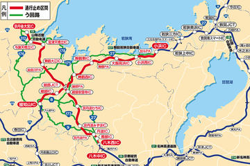 国道41号(富山市内)の通行止めに伴い、東海北陸道と北陸道で代替路(無料)措置を開始
