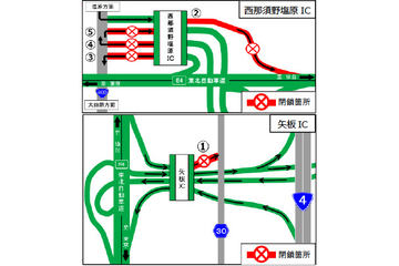NEXCO東日本、東北自動車道の矢板・西那須野塩原ICで夜間ランプ閉鎖