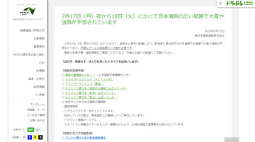 高速道路各社、2月17日夜~18日にかけての大雪や強風で注意呼びかけ