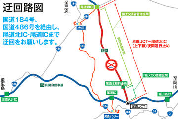 NEXCO西日本、尾道道の尾道北IC~山陽道の尾道JCT間で夜間通行止め