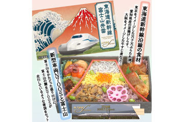 「東海道新幹線 富士山弁當」7月1日発売。富士山を背景に走行するN700Sをデザイン