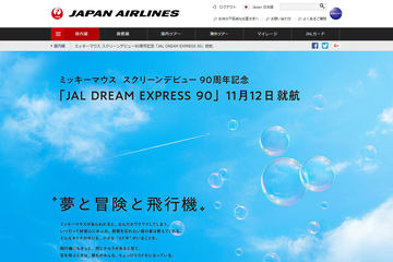 90周年のミッキーマウスが9つの表情を見せる特別塗装機「JAL DREAM EXPRESS 90」就航。背景が赤いオリジナルカラー採用