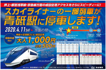 京成電鉄、スカイライナーの青砥駅停車を拡大。6月1日から上下各14便が停車