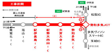 紀勢道 勢和多気JCT~紀伊長島IC間で通行止め。7月4日~7日の夜間