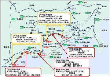 東名 大井松田IC~清水JCT間でリニューアル工事。昼夜連続の左/右ルート閉鎖など