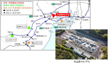 東名阪 大山田PA(下り)で普通車/大型車兼用マス増設。6月20日から