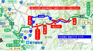 NEXCO東日本、道東道の千歳東IC~夕張IC間で緊急の夜間通行止め