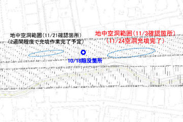 外環道トンネル直上の市道陥没、付近の2つ目の地中空洞も充填完了