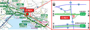 京葉道路の花輪IC上り線入口ランプで12月14日~15日に夜間閉鎖