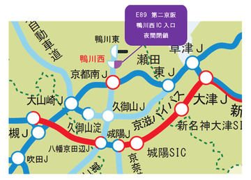 NEXCO西日本、京都縦貫道の大井IC・篠ICと第二京阪の八幡東ICで夜間閉鎖