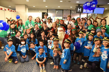 サンタクロースがフィンエアーのA350に乗って日本に到着。成田空港でさっそく子供たちにプレゼント