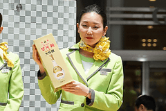 イベント時間中ブース前のステージ上では、常に各社によるなんらかのプログラムが行なわれていた。PRをかねたクイズやジャンケン大会など、参加型で景品を配るパターンが多く、通りすがりの人も足をとめて参加していた。奄美大島から駆けつけた「すもも」というユニットで活躍する指宿桃子さんによる島唄ライブもあり、買い物客の注目を集めていた。