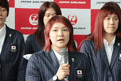 贈呈後の挨拶で吉田亜沙美選手は、「『メダルへの挑戦』をスローガンに、チームとして全力で戦っていけるように、そして私たち自身もいいプレイができるように頑張っていきたいと思いますので、日本からのご声援をお願いいたします」と決意を語った。