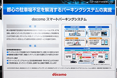 NTTグループのブースでは、ジャンル別に取り組みを紹介したコーナーを展示。そのなかの「シティ」コーナーでは、AIを使ったタクシー配車やスマートパーキングシステムなどの展示があった。