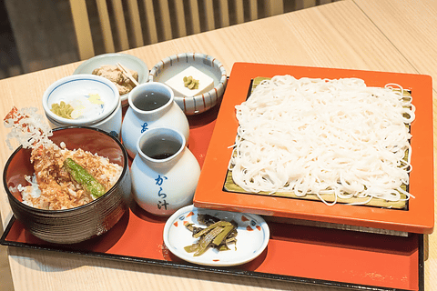 創業1789年(寛政元年)、220年以上続く老舗のそば店。太めで十割の「生粉打そば」や、二八の「太兵衛そば」などが味わえる。冷たいそばのそばつゆには、甘口と辛口を用意する。空港初出店。