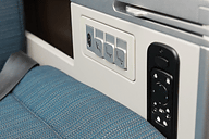 プレミアムエコノミーは2-4-2の8アブレストで28席。シートピッチは40インチで、レッグレスト、フットレストを装備。シートモニターのサイズは12.1インチで、シートモニターの下にスマホやタブレットなどを立てられるスタンドを備える。