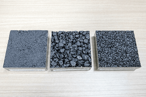 次はロードノイズ低減効果に優れた「高耐久型超低騒音舗装」だ。ロードノイズ低減を狙った低騒音舗装はこれまでもあったが、今回開発した舗装ではさらに5dB程度の路面騒音の低減を実現。加えて、構造を石の結合を強くした新バインダ(アスファルト)としたことで、アスファルト自体の耐久性が向上。痛みによってアスファルトの石がはがれてしまうことも軽減された。