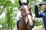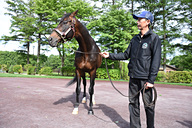 今回記者を乗せてくれたのは牡馬の「ソユーズ」。やや丸みを帯びた馬体(といっても間近で見ると分かるが、ものすごく引き締まっている)のため跨がったときに安定感があり、加えてソユーズは大変おとなしい性格だそうで、右に行きたい左に行きたいというこちらの指示には素直に従ってくれるし、散策中に自転車が近くを通り過ぎても必要以上に気にする様子がない。
