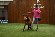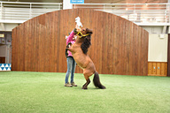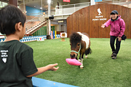 パークでシャトルバスが停まる箇所の目の前にある「パラッツォ・ベガ ポニー館」では、平日は1日2回、土日祝は1日3回、ポニーショーが開催されている。全天候型(屋内)のポニーショー設備はここが全国初で、そもそも「馬(ポニー)に芸をさせる」という試みもこのパークから始まったものとのこと。所要時間は約20分で、観覧は無料。