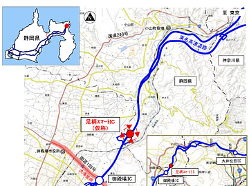 NEXCO中日本(中日本高速道路)と静岡県小山町は1月24日、2018年度末の開通を予定していた東名高速道路 足柄スマートIC(インターチェンジ)を3月9日15時に開通することを発表した。