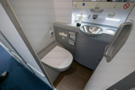 なお、プレミアムエコノミーの紹介時にも触れたとおり、1階席のラバトリーは温水洗浄便座ではないのが1つの違い。おむつ交換台付きラバトリーは5か所(後述の多目的ルームを含めると6か所)、車いす対応は1か所となる。