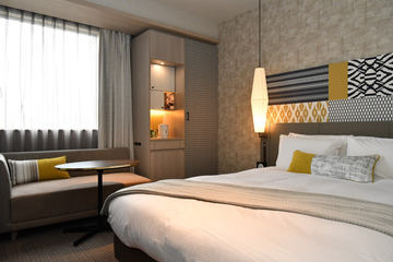 3階から15階までの客室は全338室で、スタンダード104室、モデレートダブル91室、モデレートツイン103室、トリプル26室、デラックスツイン13室、アクセシブル1室という内訳。シングルユースにも使いやすいスタンダードタイプを最も多く用意しているが、旅行者などファミリー向けにトリプルルームを設けたほか、モデレートツインはエキストラベッドで3名利用も可能になっている。