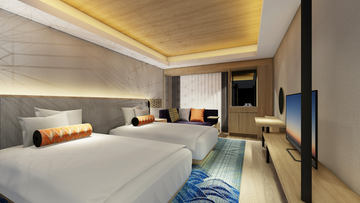 客室は195室で、スーペリアダブル(20.4~22.7m 2 )57室、スーペリアツイン(26.5m 2 )115室、デラックスツイン(38.6~53m 2 )16室、ファミリー(64.2m 2 )2室、スイート(53~64.2m 2 )4室、バリアフリー対応可能のアクセシブル(53m 2 )1室を用意する。