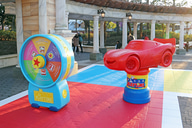 まずエントランスの両側にあるルーレットを回し、今日の遊び方を決定。地面に描かれたマス目を探しながら、ぐるっと反時計回りにパークを巡っていく。マス目を見つけたら、指示されているミッションにチャレンジしたり、ルーレットやゲームにもチャレンジ。ゴールはウォーターフロントパークの巨大なピクサーボールだ。