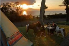 三崎観光が運営するキャンプパーク。富士山や相模湾に沈む夕日が望めるほか、モンゴルサイトでは馬を眺めながら非日常を体験できる。また、Carstay(カーステイ)と連携したRVステーションを設置し、安心して車中泊できるスペースを提供する。予約はキャンプ場検索・予約サイト「なっぷ」から可能。