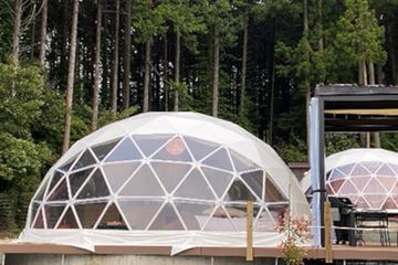 すべての部屋から富士山の眺望が楽しめる同施設では、独立型キャビン19棟、ドーム型テント5棟、フロントキャビン、ビバレッジステーション各1棟を擁する。