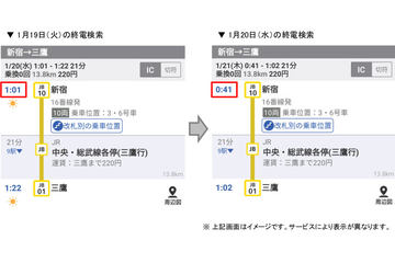 乗換案内上でJR西日本管内の新幹線・特急、およびJR四国管内の特急のルートを検索すると「新幹線・特急予約」ボタンが表示。乗車区間や日時を保持したままダイレクトに「e5489」へ遷移され、簡単かつスピーディにきっぷの予約・購入ができるという。