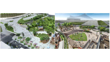 供用を開始したのは、天然芝の上でのんびりくつろげる「にぎわい広場」、イベント時にはステージとしても機能する「発信テラス」、子供から大人までスケートボードを楽しめる「屋外アーバンスポーツパーク」、授乳室・救護室を備えたインフォメーションセンター「公園管理所」など。また、公募対象公園施設である商業ゾーン(カフェ、レストランなど)を3月中旬以降に順次開業し、その他の特定公園施設は6月に供用開始する予定。