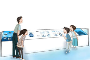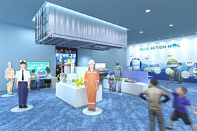 「海運を知る」コーナーでは、幅30mの大迫力シアターや商船三井グループの現役の船舶模型を展示し、生活を支える海運について紹介する。来館者が描いた船の絵が、壁面のキャンバスのなかで動くインタラクティブアートも展開する予定。