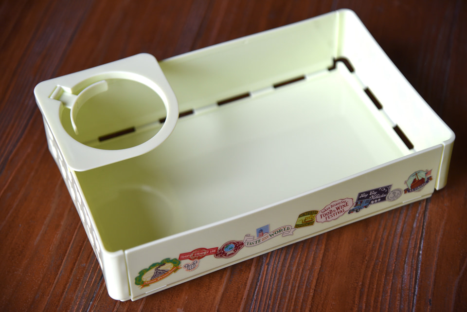 昨年も参加した人なら分かるはずだが、「あれこれ食べたい!」を実際に行動に移してみると、ドリンクに軽食と両手で持てる量が想像以上に早く限界を迎えるのだ。特にアメリカンウォーターフロントは限定メニューが多く、絶対に全部は持てない。そんなときに、パカッと「スーベニアランチボックス」を開けばスマートに収納し、見栄えもいい状態で持ち歩きができるというわけ。しかもドリンクホルダー付き。