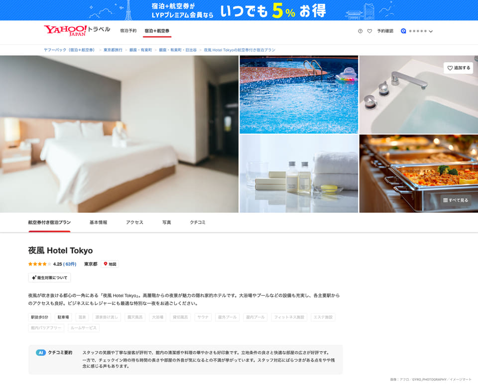 Yahoo!トラベル、宿泊施設のAI「クチコミ要約」を提供。ヤフーパックの施設ページ概要欄で