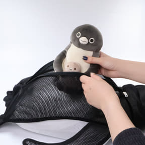 「Suicaのペンギン」がまるで海のなかを泳いでいるかのような寝そべり姿のぬいぐるみランドリーポーチ。厚みのあるクッションメッシュを使用しているので、洗濯物をやさしく洗える。旅行の際に衣類を入れるポーチとして、タオルなどを詰めればクッションとしても使える。サイズは68×53×20cm(羽を広げたときの幅×奥行き×高さ)。