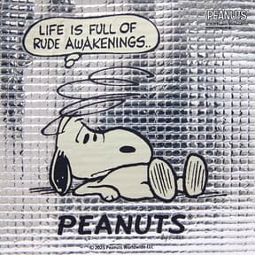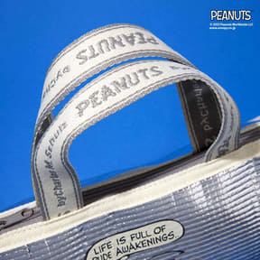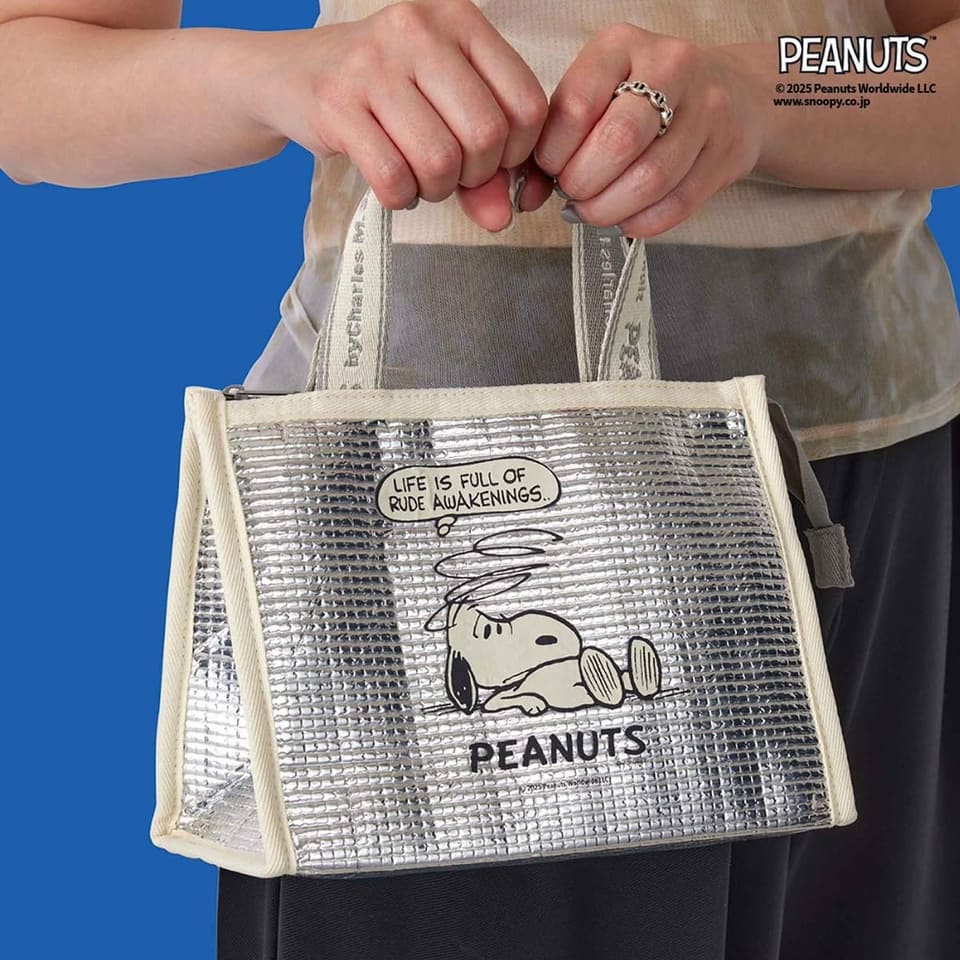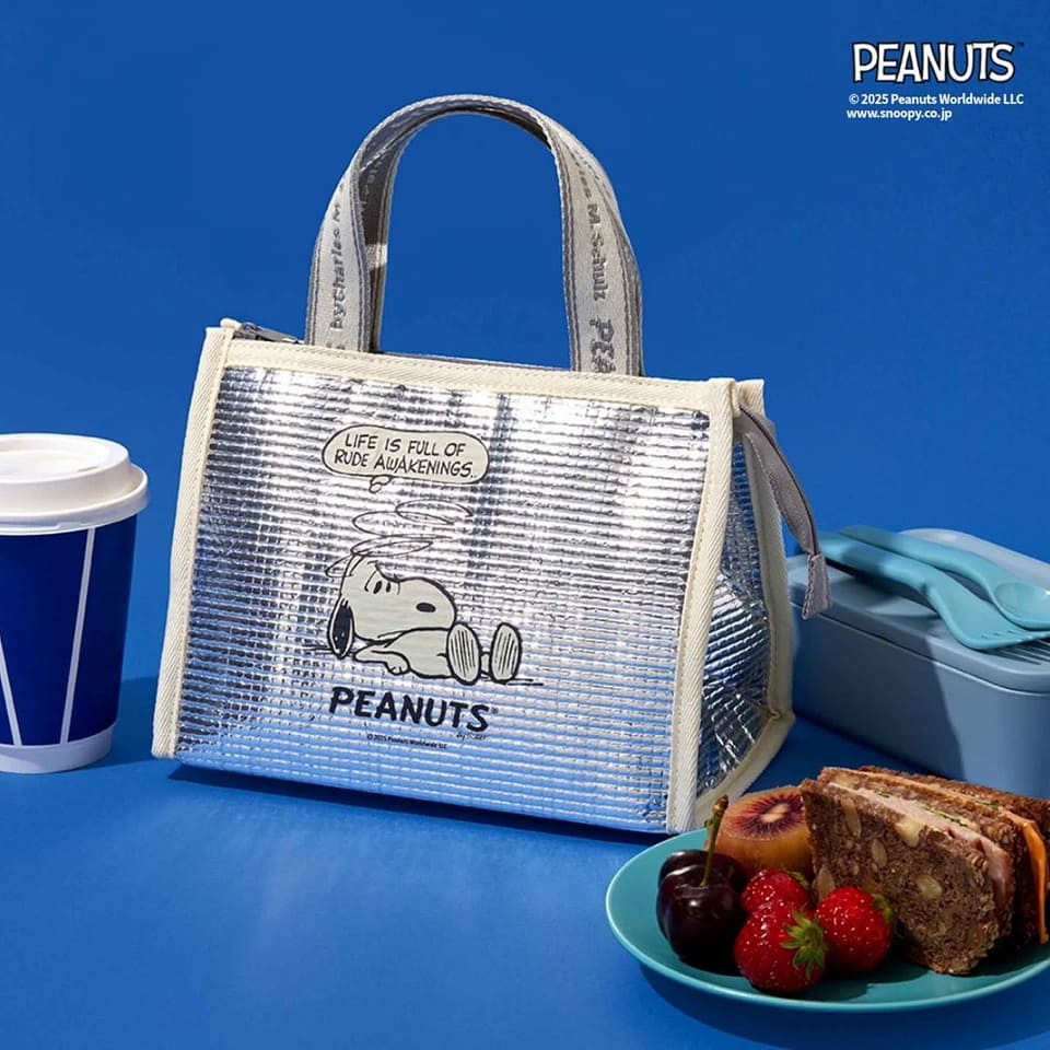 保冷効果のあるアルミ素材に「PEANUTS」75周年記念アートを使用した今だけしか手に入らないデザインで、持ち手にあしらったロゴもポイントという。