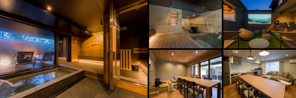 Bタイプは、リビングと直結したテラスにサウナや人口の芝、屋外プロジェクターを設置し、プライベート感あふれる非日常的な空間を演出。うち1室はドックフレンドリールームで、小・中・大型犬2頭まで同伴して宿泊できる。