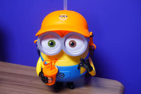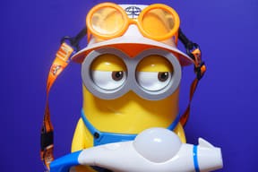 USJ「ミニオン」新作ポップコーンバケツを手に入れた! 光線銃を構えてニヤリ。悪党な目つきがポイント