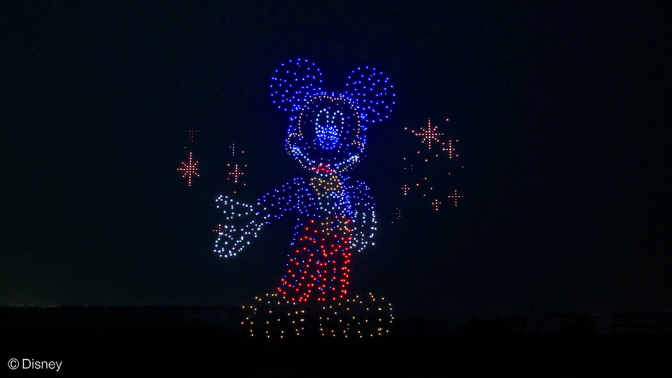 東京ディズニーリゾート・スペシャルドローンショー“マジック・イン・ジ・エア”は、総計約1500機のドローンが夜空に浮かび上がり、ディズニーキャラクターを大きく描く約15分間のショー。昨年も全国の花火大会で開催している。