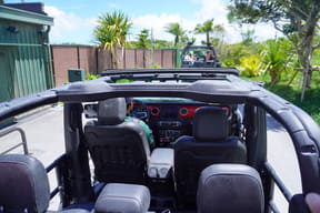 オフロード車でのジャングルツアー。次々と現われる恐竜に遭遇し、クライマックスはT-REXから逃れるため急勾配や池を猛スピードで爆走。体験時間約17分。
