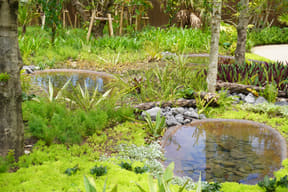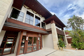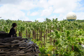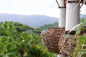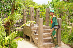 周辺にはパイナップル畑も広がるのどかな田舎道を進んだ先、鬱蒼と茂る原生林をそのまま活かした広大な土地に突如として現われるジャングリア沖縄。これまでのリゾートやテーマパークの枠を超えたまったく新しいタイプの施設で、南国のジャングルで過ごすような没入型バカンスが楽しめる。