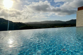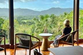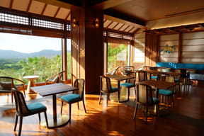 飲食施設は、パークを一望できる「パノラマダイニング」が目玉のひとつ。全面ガラスの開放的な店内席や鳥の巣に見立てたオープンエアーの“ネスト席”などを設けており、沖縄県産食材をふんだんに使った料理とともに、大自然の景色や南国の夜を彩る花火も楽しめる。シグネチャーメニューは肉汁たっぷりのジャングリアハンバーグ(3200円)やビーフシチューを包んだ火山ビーフパイ(2500円)など。