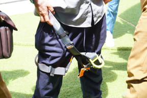 高さ15mの巨大発射台に立ち、身体に固定した2本のゴムロープで引っ張られるとカウントダウン。まるで弓矢のように空に向かって放たれる。