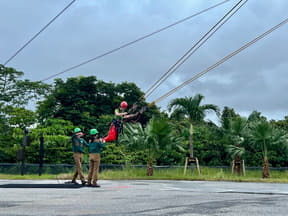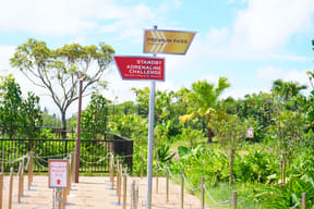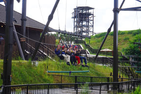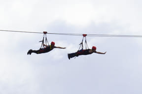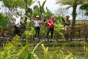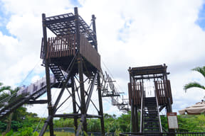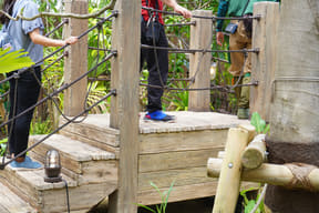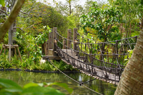 ジャングルの上にかかる、全長84mの吊り橋を渡るファミリー向けアスレチック。