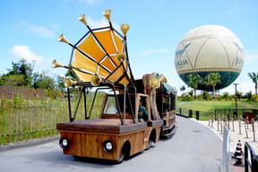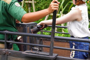 猛スピードで追ってくるT-REXから逃れるため、ゲストを乗せたクルマは見事なハンドルさばきで爆走するが、岩地や池、急勾配に突っ込む険しい道では、身体が吹き飛ばされそうなほどスリル満点。爆音や放水などの演出も組み込まれ、また、プレショーから始まるストーリーや美術セットも完成度が高い。ナビゲーターたちの鬼気迫る演技・表情にも注目だ。