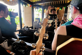 アウトドアレストラン「ワイルドバンケット」の広場で突然始まる南国ミュージックライブ。