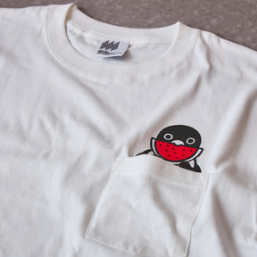 胸ポケットからちょこっとのぞく“スイカを食べるSuicaのペンギン”の姿がポイント。綿100%で肌ざわりがよく、通気性や吸湿性に優れているため、汗をかいてもムレにくく快適に着用できるという。
